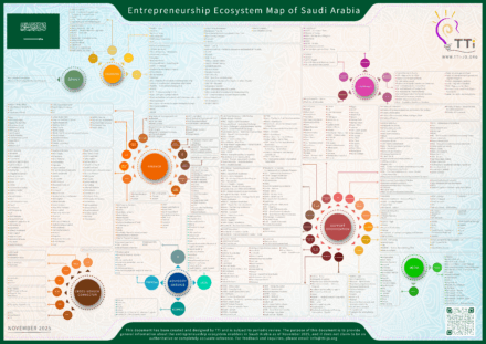 Explore the Saudi Entrepreneurship Ecosystem Map, a digital platform that showcases the organizations, initiatives, and projects driving Saudi Arabia’s startup scene. In addition, it highlights connections between key players and illustrates how the ecosystem functions as a whole.